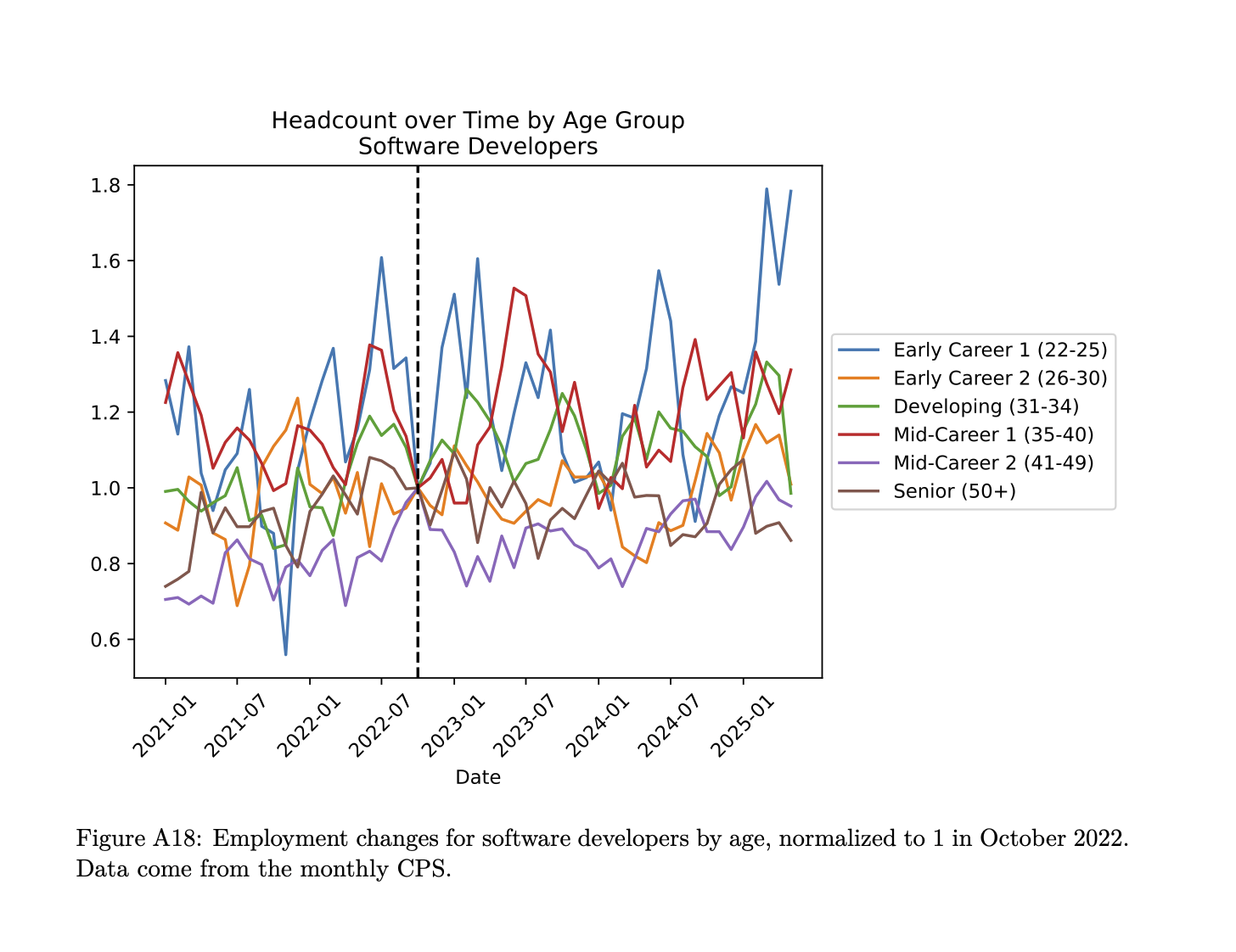 “In one part of the analysis, we control for the firm and find that even within the same company, the more-exposed jobs are declining relative to the less-exposed jobs.”